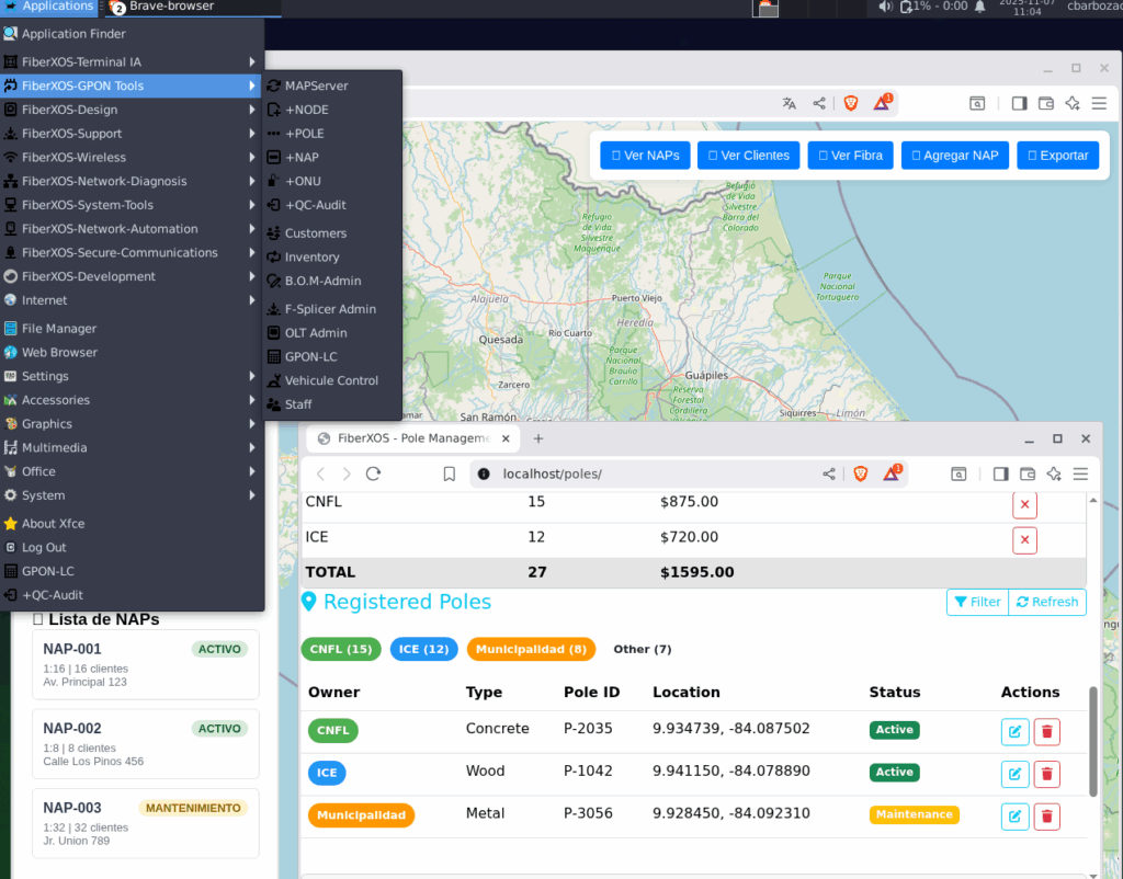 | En el sector de las telecomunicaciones, las empresas enfrentan un problema crítico: la contratación inadecuada de personal. Con frecuencia, se contratan dibujantes CAD sin experiencia en redes GPON o técnicos en redes Cisco sin conocimientos de diseño CAD, lo que provoca errores costosos, pérdida de recursos y retrasos en proyectos. Un efecto en cascada invisible, un problema de Diseño, afectará el rendimiento de la red, calidad de servicio al usuario final y quizás la pérdida de clientes. Todo porque no se tienen las herramientas adecuadas para hacer las cosas correctas . | ¿ Por qué FiberXOS-EDU es único ? Open Source: permite inspección, modificación y personalización total del sistema. Los usuarios y empresas pueden adaptar herramientas, scripts y entornos según sus necesidades. Debian 12: garantiza robustez, confiabilidad y estabilidad, con soporte de actualizaciones y compatibilidad con una gran variedad de hardware y software profesional. Seguridad y rendimiento: FiberXOS integra navegadores seguros, herramientas de monitoreo de red y utilidades de mantenimiento para proteger la información y optimizar recursos. |