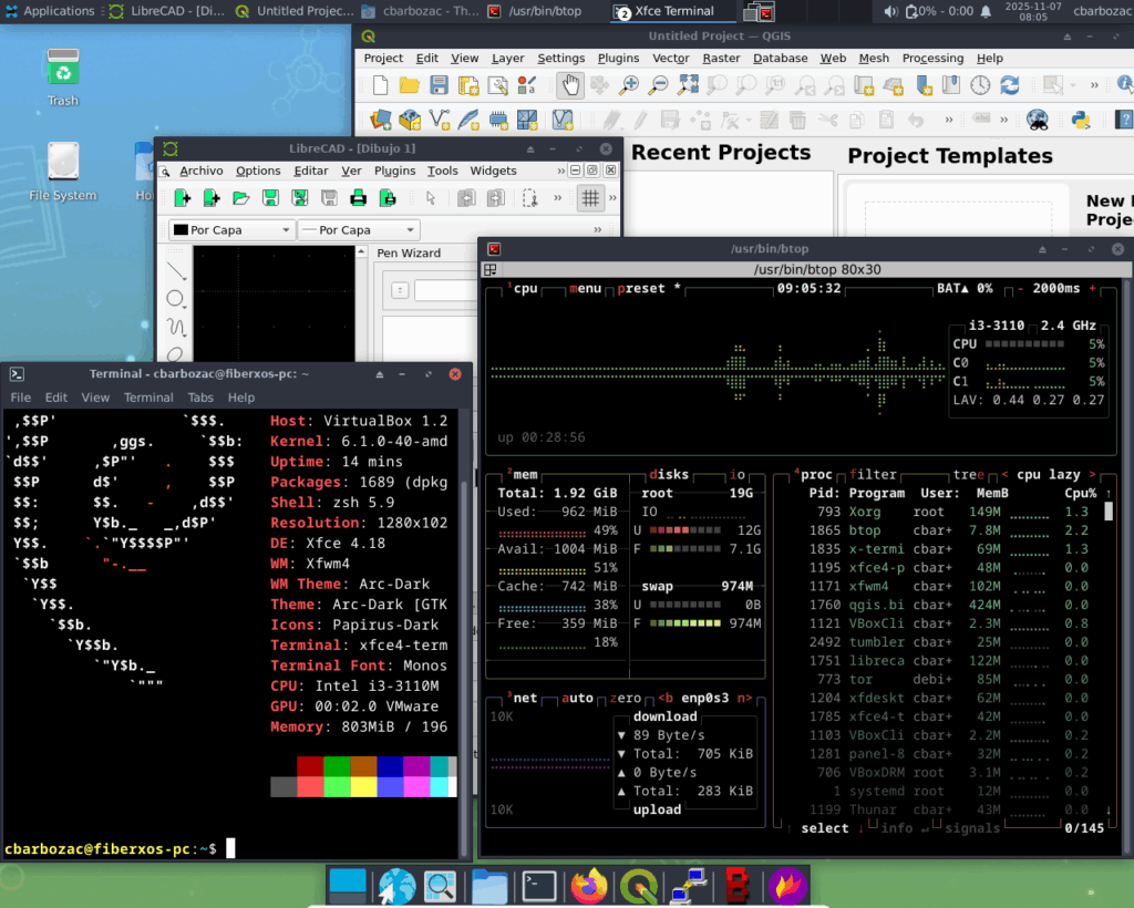 | FiberXOS nace como la solución definitiva a esta problemática. Es un sistema operativo Open Source, basado en Debian 12, que combina estabilidad, seguridad y confiabilidad con un entorno completamente preparado para el aprendizaje y la práctica profesional en telecomunicaciones. |